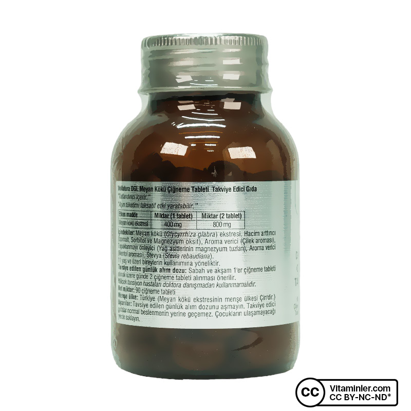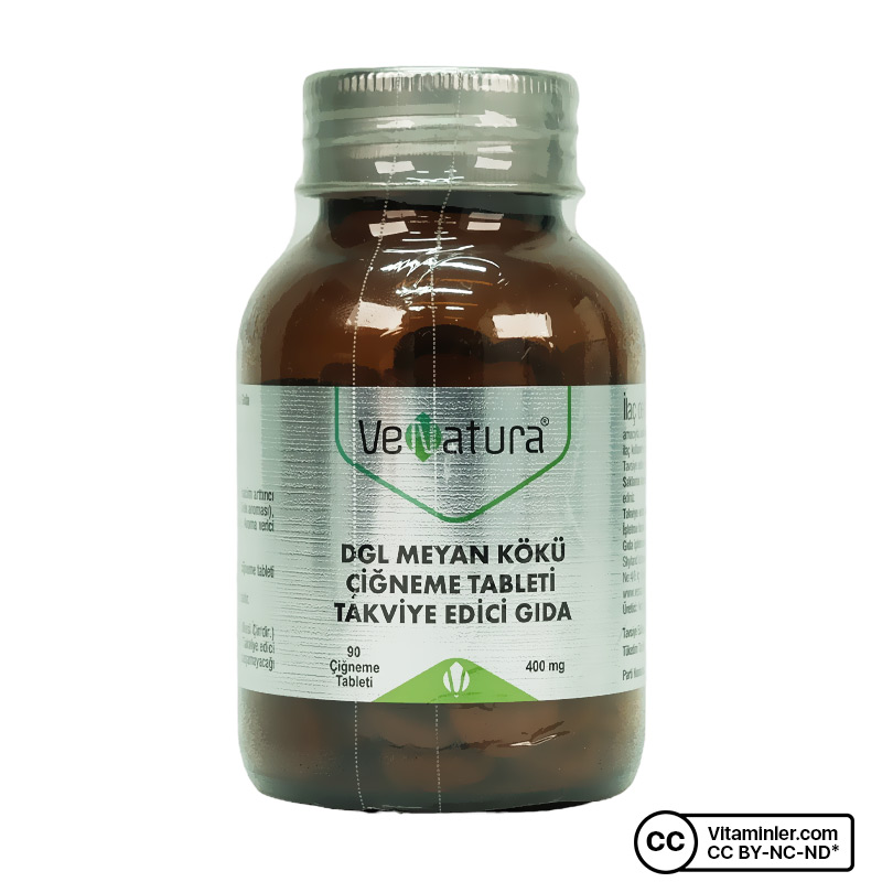 Venatura DGL Meyan Kökü 90 Çiğneme Tableti Çilek, doğal meyan kökü ekstresi içeren, pratik kullanım sunan bir takviye edici gıdadır. Her tablette 400 mg meyan kökü ekstresi bulunur. Çiğneme tableti formu sayesinde suya ihtiyaç duymadan kolayca tüketilebilir. Çilek-nane aroması ile ferahlatıcı bir tat sunarak günlük kullanımı keyifli hale getirir.