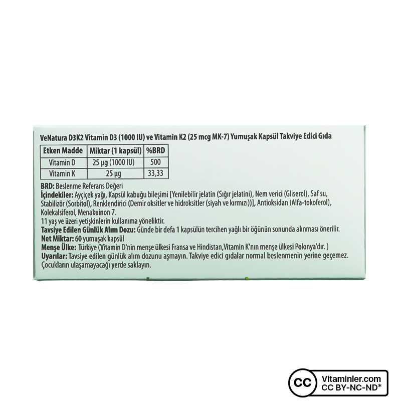 - Her kapsülde 25 µg D vitamini ve 25 µg K vitamini içeriği