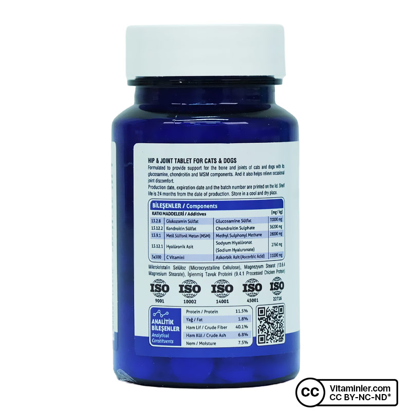 Kedi ve köpeklerin genel eklem ve kemik yapısını desteklemeye yardımcı olmak için özel olarak formüle edilmiş takviyedir. Glukozamin ile tendon gibi genel bağ doku yapısının korunmasına yardımcı olur.