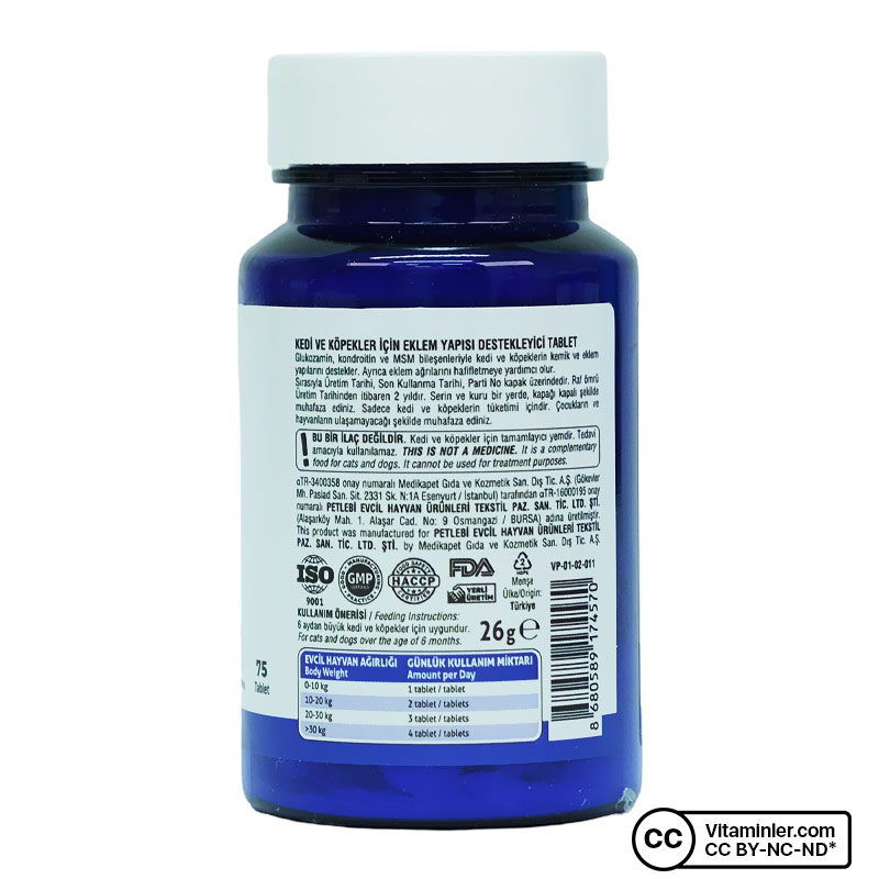 İçerdiği kondroitin, MSM, akgünlük ağacı özütü gibi bileşenlerle kedi ve köpeklerin sağlıklı bir gelişim geçirmelerini ve yaşlı evcillerin ise bakım sürecini desteklemesine yardımcı olmak için özel olarak formüle edilmiştir.