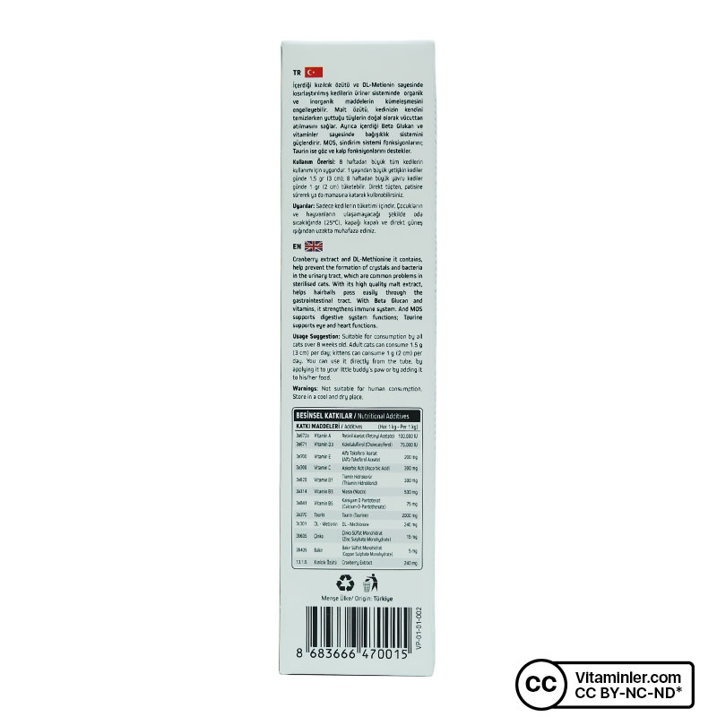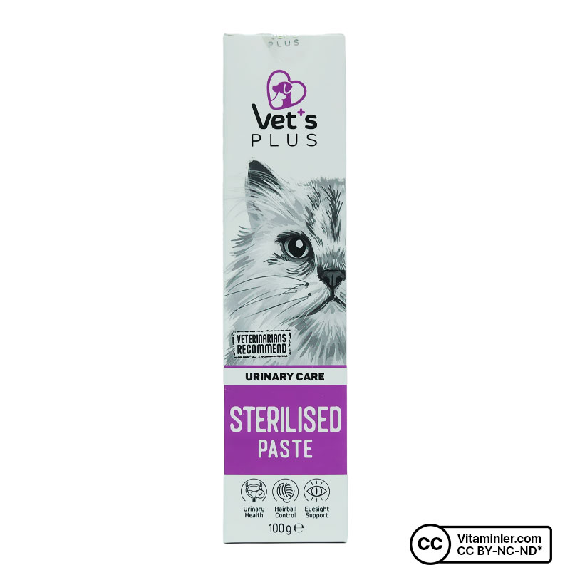 Vet's Plus Strelised Paste, kısırlaştırılmış kedilere özel geliştirilmiştir. Zengin vitamin ve mineral içeriği ile kısırlaştırılmış kedilerin özel ihtiyaçları için formüle edilmiştir. İçerdiği kızılcık ekstratı ile ve idrar yollarını destekler. Sindirim sisteminin düzenli bir şekilde çalışmasını destekleyen MOS içerir. İçerdiği yüksek kaliteli malt özleri sayesinde kedinizin kendini temizlerken yuttuğu tüyleri ve diğer sindirilemeyen bileşenleri doğal yollarla vücuttan atmasına yardımcı olur.