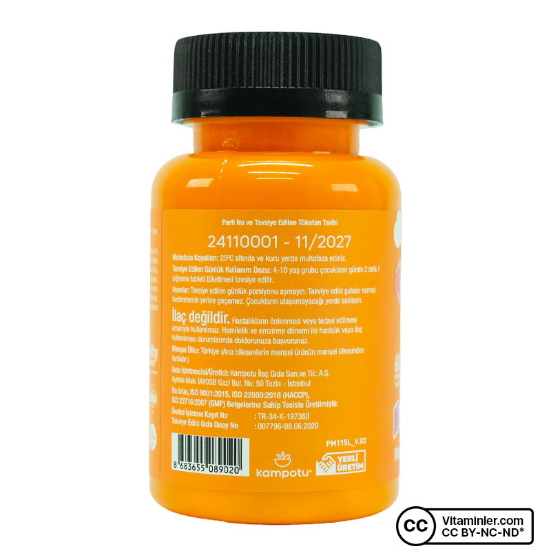 4-10 yaş grubu çocukların günde 2 defa 1 çiğneme tableti tüketmesi tavsiye edilir.