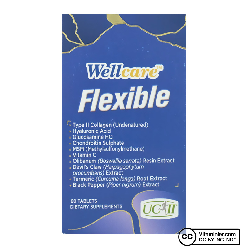 Wellcare Flexible; servis başına 1500 mg glukozamin HCl, 1000 mg kondroitin sülfat ve 250 mg MSM içerir. İçeriğinde ayrıca Tip II kolajen, hyaluronik asit ve C vitamini yer alır. Formülü; akgünlük, zerdeçal, şeytan pençesi (devil's claw) ve karabiber gibi bitkisel ekstreler ile zenginleştirilmiştir.