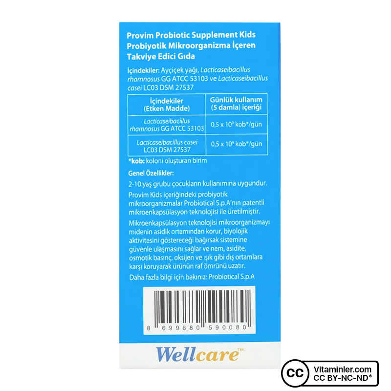 Wellcare Provim Kids; içeriğinde 2 farklı probiyotik türü barındıran, çocukların kullanımına özel olarak geliştirilmiş bir formüldür. Sıvı damla formunda sunulan yapısı, probiyotik mikroorganizmaların günlük beslenme rutinine pratik bir şekilde dahil edilmesini sağlar. Probiyotik takviyesi, alerjen, gluten ve koruyucu içermeyen formülüyle öne çıkar.